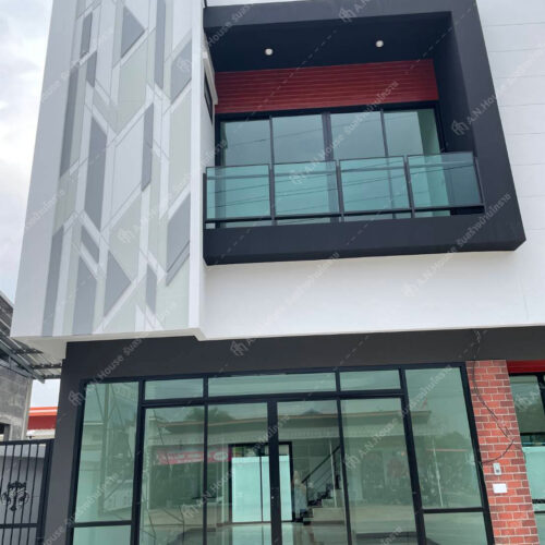 ผลงานการก่อสร้างอาคารพาณิชย์ 2 ชั้น ที่โดดเด่นด้วยดีไซน์โฉบเฉี่ยวและการเล่นโทนสีที่เป็นเอกลักษณ์ เราให้ความสำคัญกับการเลือกใช้วัสดุที่แข็งแรงควบคู่ไปกับความสวยงาม