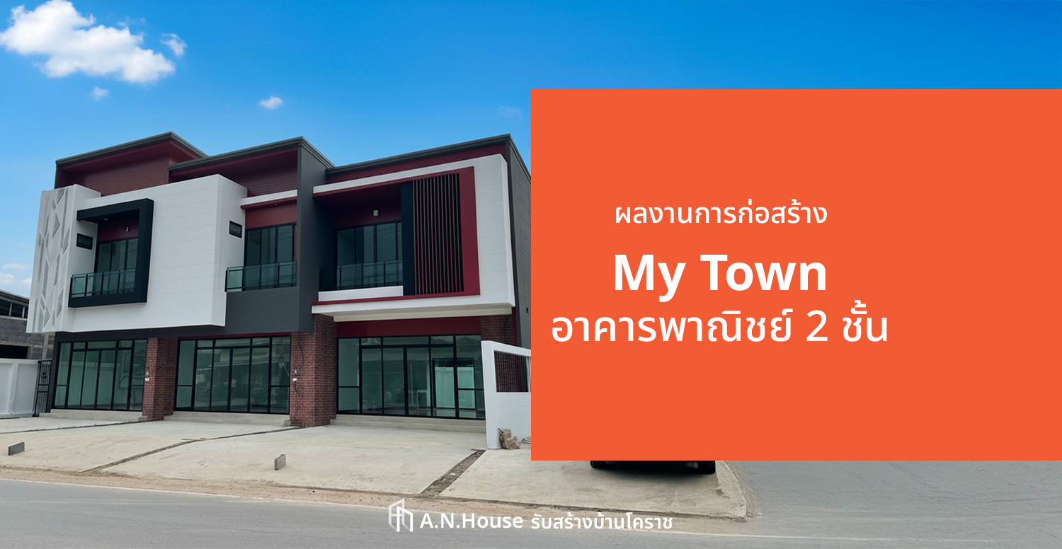 ชื่อโครงการ: My Townประเภท: อาคารพาณิชย์ 2 ชั้นสถานที่: นครราชสีมาก่อสร้าง : A.N. House รับสร้างบ้านโคราช ผลงานการก่อสร้างอาคารพาณิชย์ชั้น ที่โดดเด่นด้วยดีไซน์โฉบเฉี่ยวและการเล่นโทนสีที่เป็นเอก